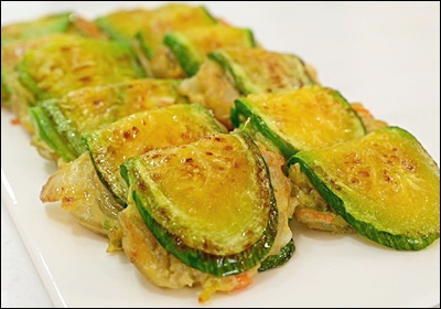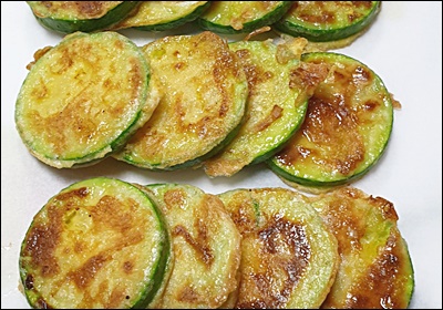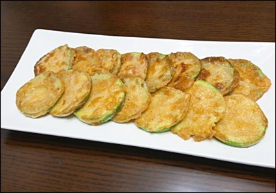 2️⃣ 밀가루 + 계란 입힌 호박 올리기