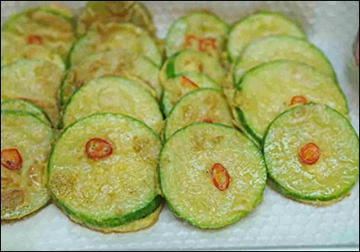 A4. 호박을 절인 후 꼭 물기를 제거하고, 기름이 너무 많지 않도록 최소량으로 조절하면 흡수를 줄일 수 있어요.